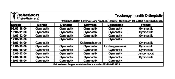 RehaSport Rhein-Ruhr e.V. Mühlenstraße 29 45659 Recklinghausen